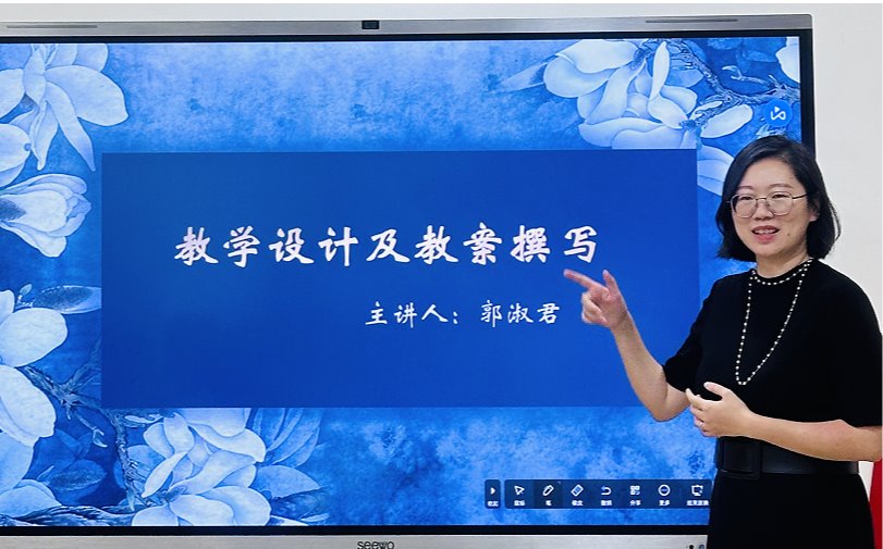 大会伊始,郭老师以自身教学实践中不同教学阶段所撰写的三份教案导入活动主题,分享了不同时期的教案撰写心路历程,郭老师表示教案即教学方案,是教师根据教学大纲、教材及学生实际情况,对即将进行的教学活动进行的有针对性、计划性的预先设计。同时教案的撰写的过程是循序渐进、不断完善的过程,为此她以学校教案模板为例,按不同环节进行讲解。