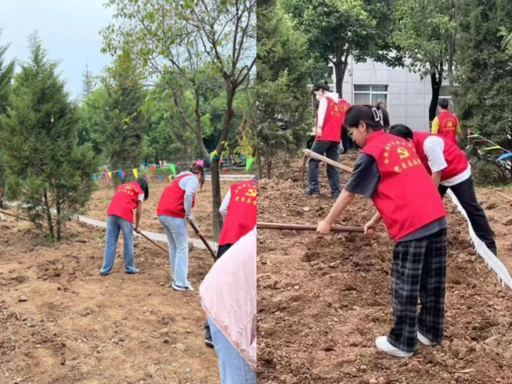 在辅导员们的积极引领下,同学们纷纷响应号召,拿起锄头和铁锹,投入到了紧张的劳动之中。他们或挥锄铲土,或挖掘翻地,尽管汗水浸湿了衣衫,但他们的脸上却洋溢着满足和喜悦的笑容。