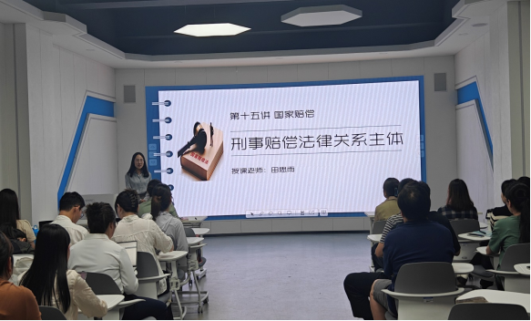 田思雨老师以“国家赔偿——刑事赔偿关系主体”为主题,进行了课程思政示范教学。她通过最高人民法院公布的典型案例“呼格吉勒图国家赔偿案”导入,巧妙地将“保障人权、规范公权、平冤理直、有错必究”的思政价值理念融入到课堂教学中。