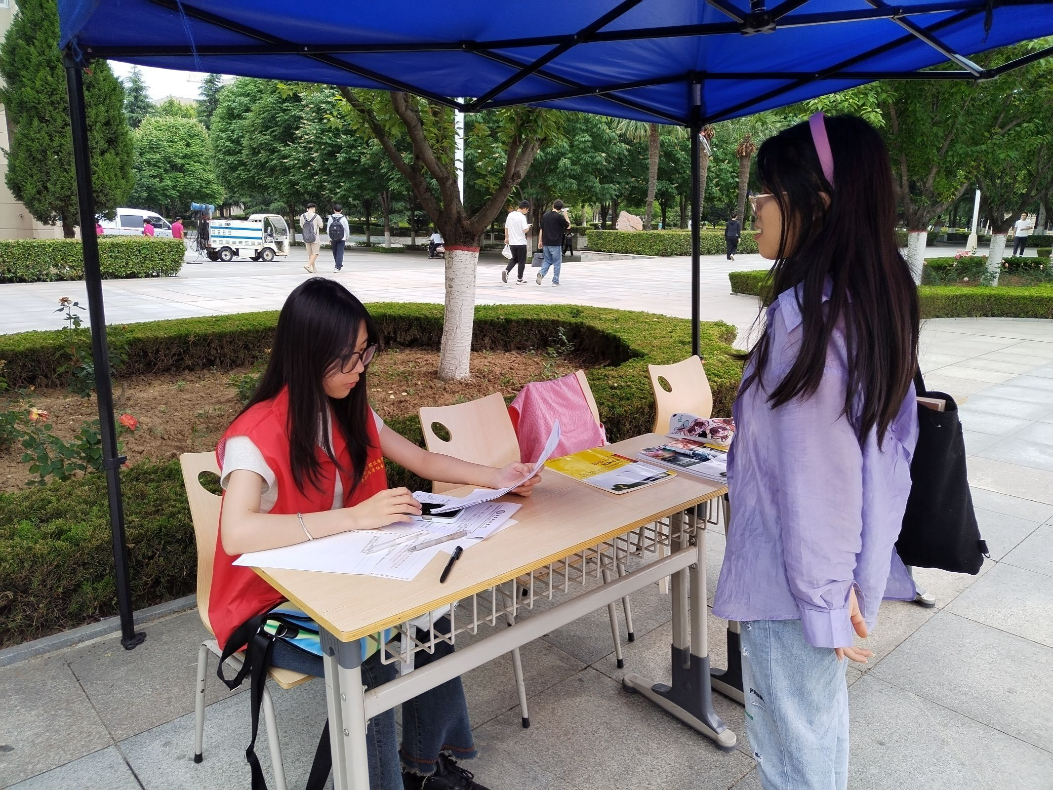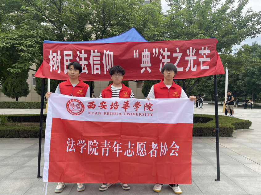 随着社会的快速发展和法治中国的深入推进,法律在维护社会秩序、保障公民权益方面发挥着越来越重要的作用。为了提升我校学生的法律意识,增强自我保护能力,并促进校园法治文化建设,同时贯彻落实依法治国理念和二十大学雷锋精神,西安培华学院法学院青年志愿者协会积极响应第四个民法宣传月,精心策划并于5月28日在我校丰园西广场开展了“树民法信仰,典法治光芒”的校园法律主题活动。
