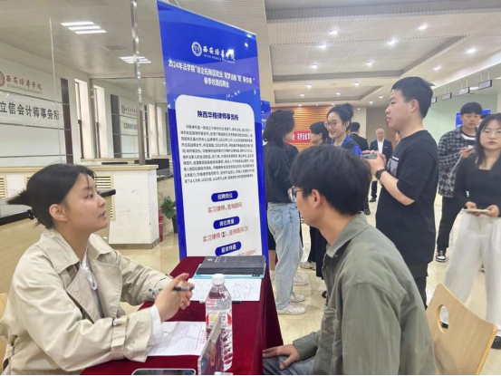 招聘会现场法学院院领导和老师与企业进行交流,对现场同学进行就业相关指导,鼓励毕业生端正心态,招聘会现场气氛热烈,同学与意向单位围绕岗位要求、岗位职责、公司概况及发展前景、福利待遇等信息互动交流。