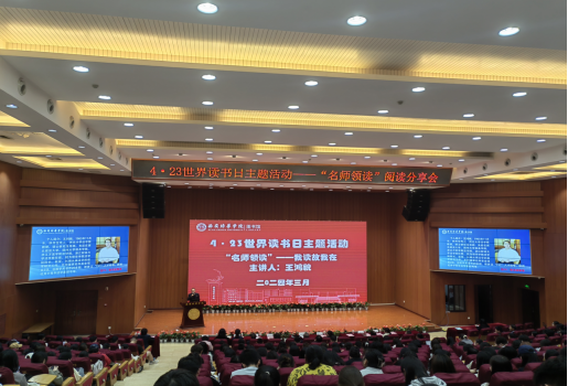 闵波副馆长号召同学们以名师领读分享和4.23世界读书日为契机,用好馆藏图书资源,以书之名,阅读无限人生。并倡议老师们、同学们将大家闲置的有价值的书籍捐赠给图书馆,与全校读者共享,共同点亮求知的明灯,通过阅读做最好的自己,通过阅读积淀成就美好人生!