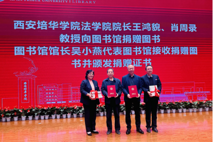 活动现场,王鸿貌教授、肖周录教授向图书馆捐赠自己专著共13种13册,图书馆馆长吴小燕代表图书馆接受捐赠,并颁发捐赠证书。这些图书图书馆将及时入库、上架流通,欢迎同学们前来借阅。