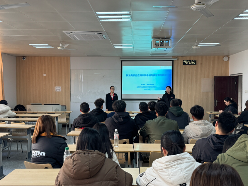 在“12·4”国家宪法日来临之际,为切实增强大学生法治意识,全力构建文明校园环境,营造良好的高校法治氛围,2024年12月4日下午,法学院于育英楼3308教室顺利举行民法典实务应用体系串讲与典型案例解读讲座。此次讲座由北京市炜衡西安律师事务所高级合伙人张志娟律师主讲。
