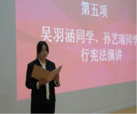 在歌声后,两位学生代表孙艺瑞、吴雨涵同学分别进行了宪法演讲,她们从不同的角度阐述了宪法对于国家和个人的重要性,以及如何在日常生活中遵守和维护宪法,赢得了现场的掌声和赞许。孙艺瑞同学从历史的角度回顾了我国宪法的发展过程,指出了宪法是国家的基本法,是国家制度和法律制度的总依据,是国家的政治生活和社会生活的根本准则。她说,宪法是国家的灵魂,是人民的心声,是社会的良心,是法治的基石。吴雨涵同学从现实的角度分析了我国宪法的实施情况,指出了宪法是保障人民权利和义务的基本法,是维护社会公平正义的基本法,是促进国家发展进步的基本法。她说,宪法是人民的利器,是人民的盾牌,是人民的指南,是人民的希望。
