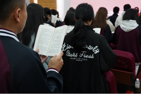 升旗仪式结束后,钱豆老师带领现场的学生进行了宪法晨读,共同朗诵了《中华人民共和国宪法》的序言和部分条款,感受了宪法的权威和尊严。接着,全体师生跟唱了《宪法伴我们成长》这首歌曲,歌声响亮,寓意深刻,展现了法学系师生的风采和活力。