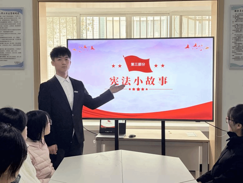 为深入宣传贯彻习近平法治思想,增强青年学子宪法意识,提升法治素养。2025年12月4日中午,在第十二个国家宪法日来临之际,习近平法治思想宣讲团于明德社区3号楼成功举办“‘宪’上‘宪’下 学法守法”宪法主题宣讲活动。