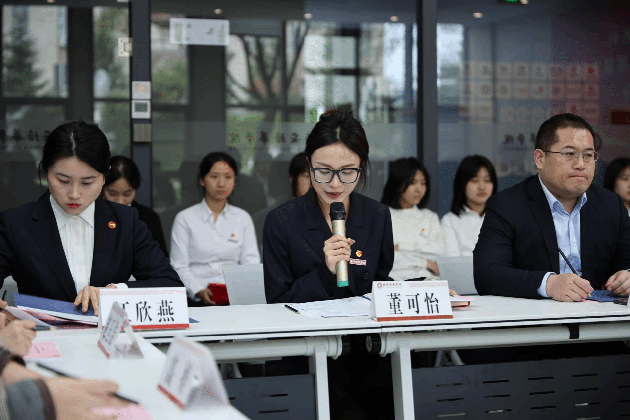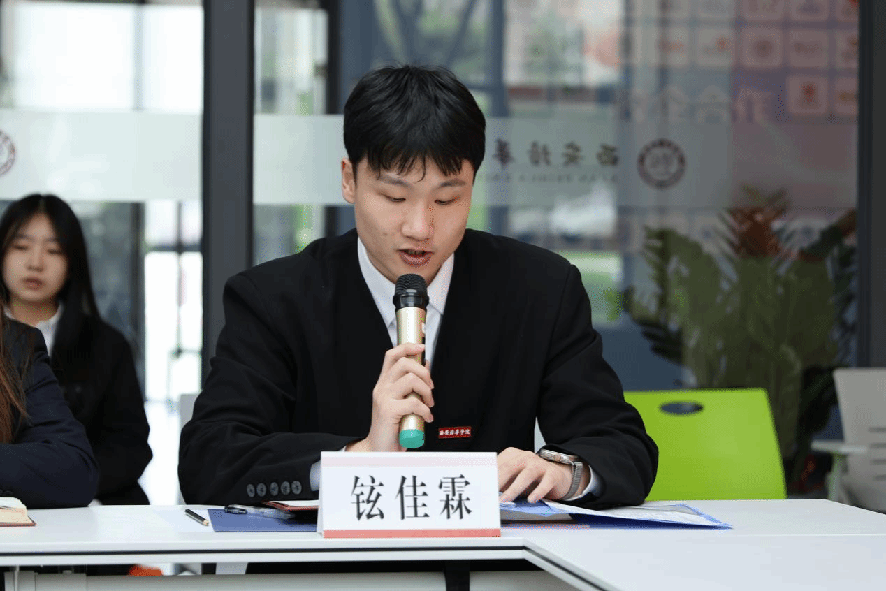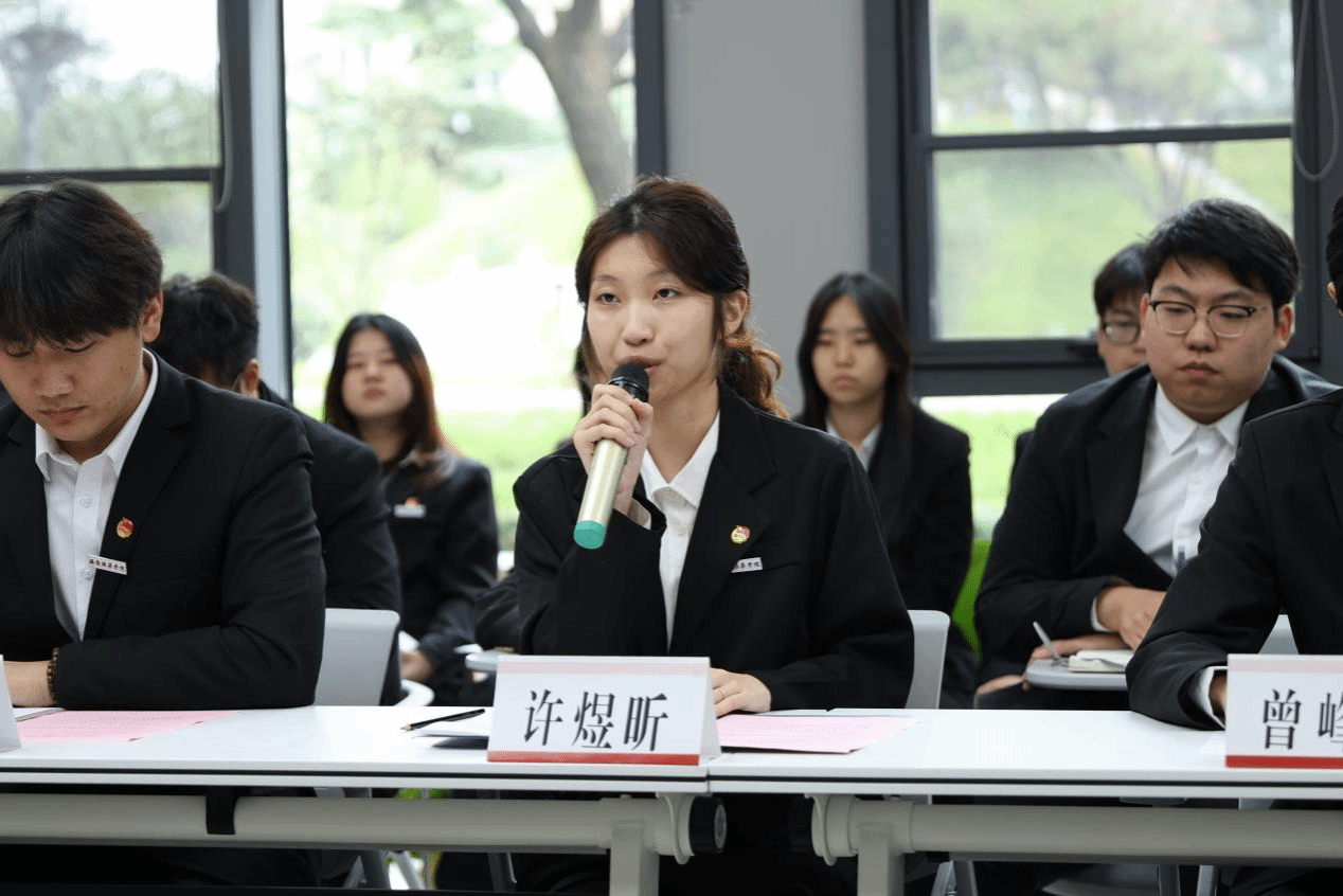法学院团委学生兼职副书记许煜昕就各学生组织的未来工作计划与活动规划作报告,并作出工作承诺:学生骨干将搭建常态化、精准化沟通机制,筑牢师生联动纽带;聚焦学生工作高质量内涵式发展,协同创新打造贴合学院特色与学生需求的品牌活动,切实实现“1+1>2”的育人效应。
