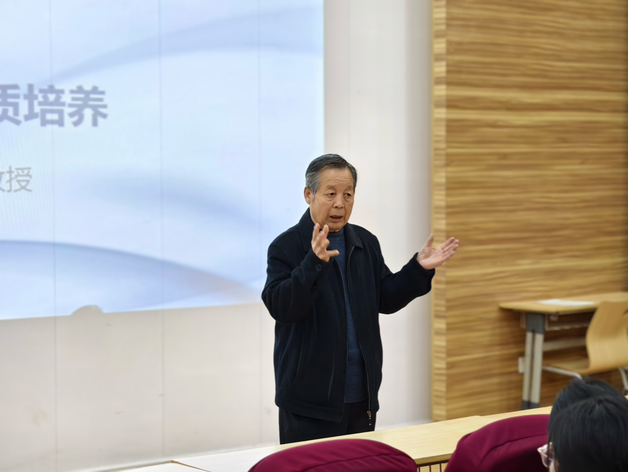 在讲授法学生的职业规划设计时,肖教授以历史故事为引子,引导同学们思考如何成为一个有个性、有品性的法律职业人。同时,还就如何提升法学专业技能、积累实践经验等方面给出了实用的建议,鼓励同学们在大学期间积极参与模拟法庭、法律实习等活动,锻炼自己的法律实务操作技能能力。