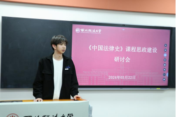 西北政法大学法治学院、法律硕士教育学院法律史教研室宋鋆博士作为青年教师代表,讲述了自己在《中国法律史》课程教学中如何进行课程思政建设,她表示,通过分析中国古代和近代经典案例,让学生认识到中华民族优秀文化的光辉成果,获得民族自豪感,同时又能够以史为鉴,深刻体会当今社会主义法制的先进性和优越性,在思想上引导学生认识到人生价值、生存意义在于奋斗、在于奉献,在于勇担责任、成就他人、回报社会,帮助大家树立正确的人生观和价值观,并就自己法官工作经验对大家以后的职业选择提出相关建议。