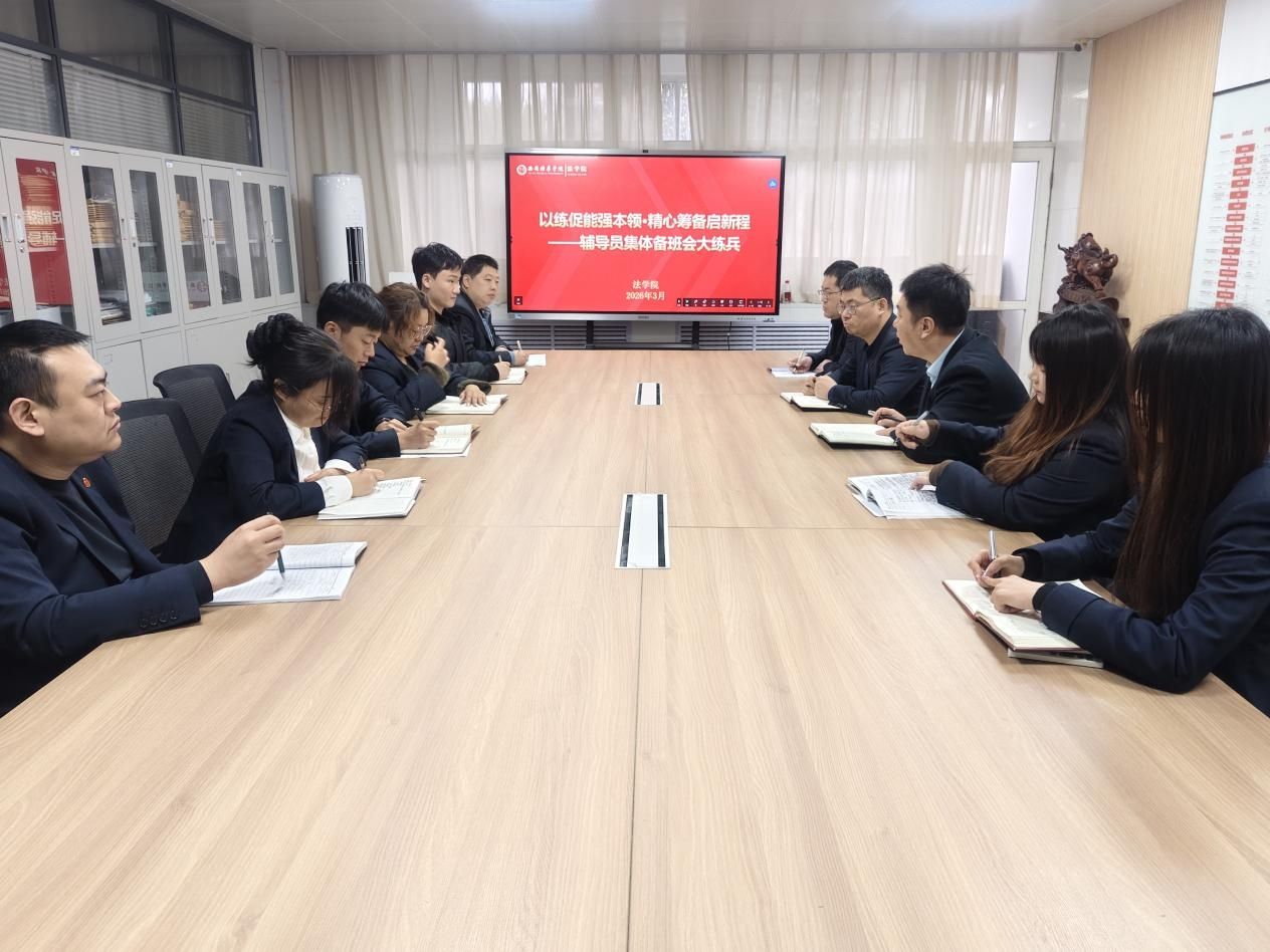 为深入落实立德树人根本任务,持续提升辅导员队伍专业素养与履职能力,3月1日,法学院在格物楼1118会议室开展本学期首次辅导员大练兵活动。法学院党总支书记兼行政副院长韩斌、一站式服务站站长乔安及全体辅导员参会,活动由学生干事杨婷婷主持。本次活动以迎接新学期为主题,开展集体备班会、工作部署、宿舍走访核心环节,全面夯实新学期学生工作根基。