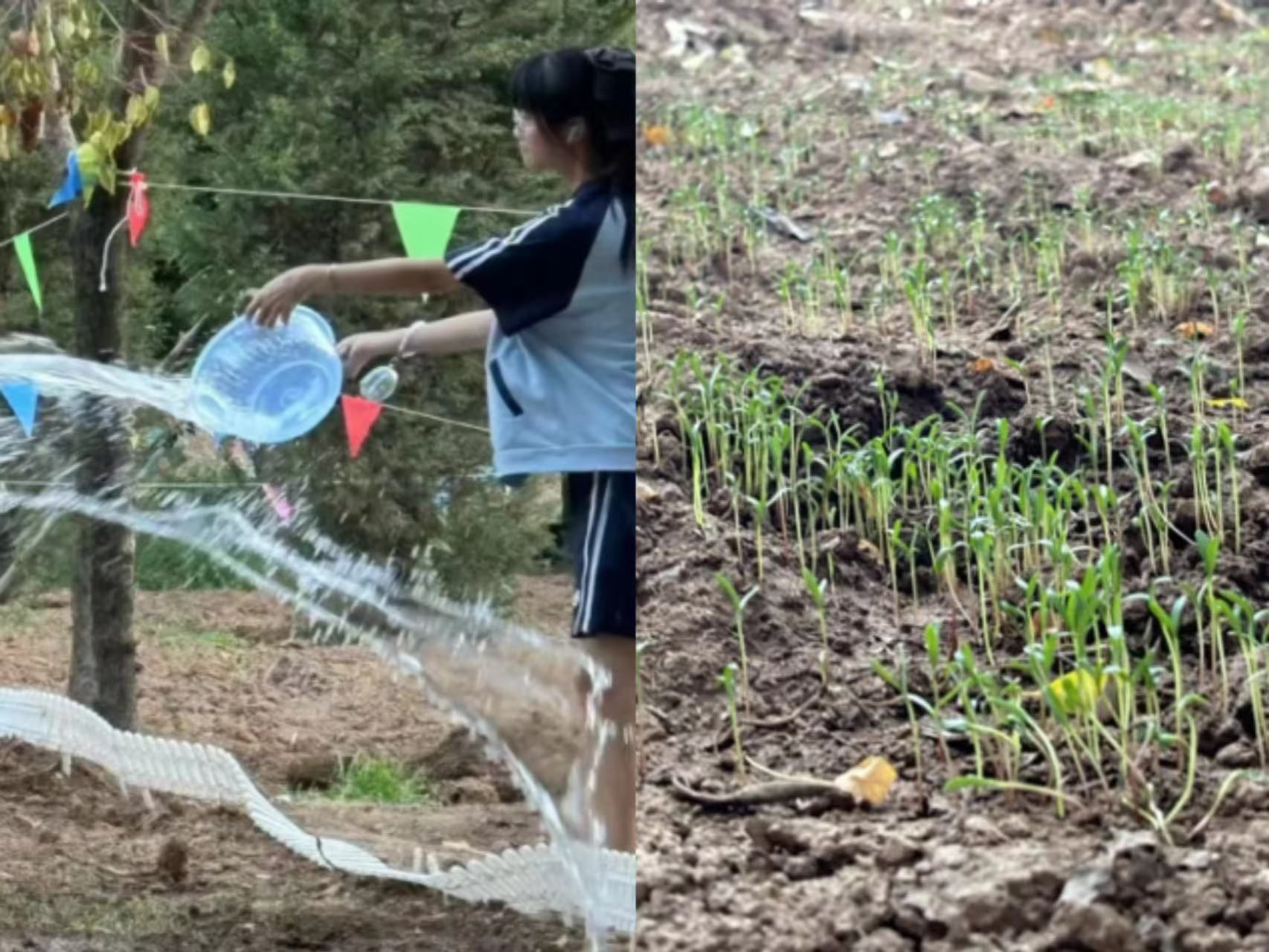 在清流的温柔滋润下,格桑花种子渐渐展现出绿色的枝芽,它们稳稳地扎根于园区之中,宛如一颗颗充满生命力的希望之星。此次的劳动实践,使我们对于劳动的认识更加具象化,不再是抽象的概念,而是具体而微的体验与感悟。