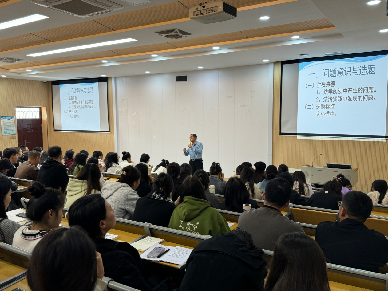 为了保证2025届毕业论文工作的顺利进行,并进一步提升学生的学术研究能力,11月1日、11月5日中午12点30分,法学院于格物楼J101、育英楼3506教室分别召开了2025届法学本科、法学(专升本)毕业论文动员会。法学院院长王鸿貌教授、教学副院长赵洁副教授、教学科研干事、各教研室论文指导老师以及毕业班全体学生参会,本次会议由论文工作负责人私法教研室主任高燕老师主持。