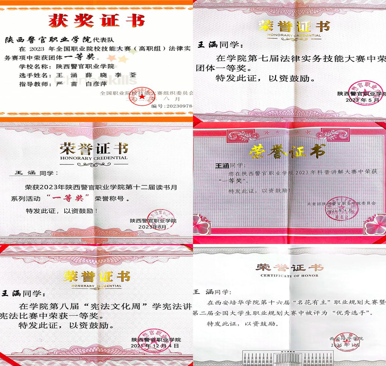德法兼修,自强不息。王涵同学始终刻苦学习,努力掌握各项法律专业知识,不断提高自己的专业素养。每学期专业和综合成绩位列班级第一名,名列年级前茅。他认为:“学习成绩永远都只是分数的象征,人品才是最高的学位。无论过去在陕警院法律系还是在培华学院法学院的学习,都应着重提高自己的情商和修养,练就过硬才干,德才兼备,全面发展”,他被评为2022-2023年度中国大学生自强之星。