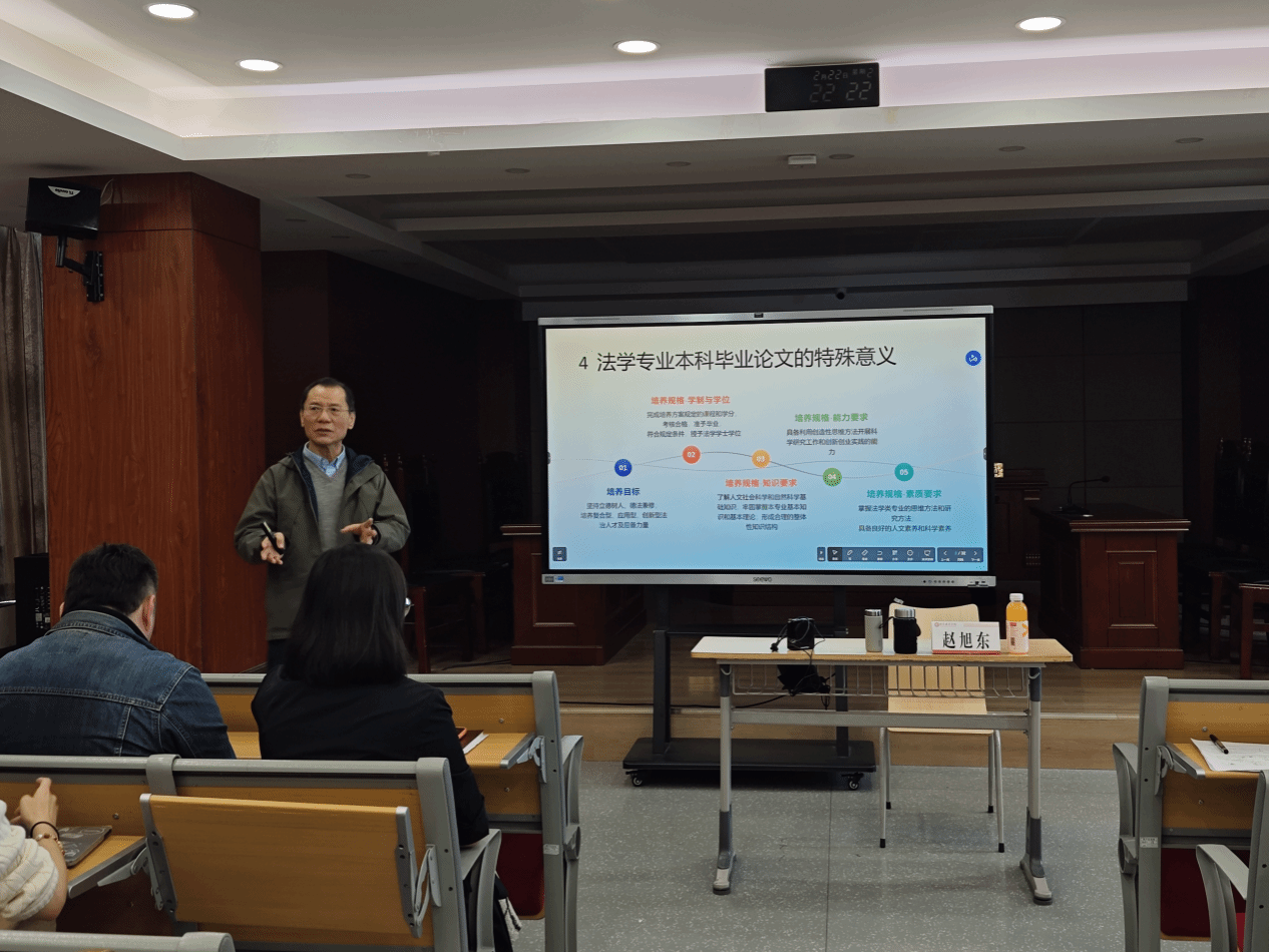院长助理高燕副教授在开场对赵旭东教授进行详细介绍,并讲到本科毕业论文是法学知识整合与深化的关键环节,关乎人才培养质量.
