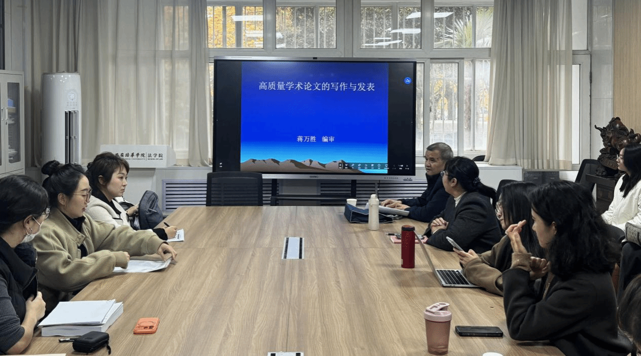 为提升教师科研能力,推动学术论文写作与发表水平的整体提高,法学院理论法教研室于2025年11月7日14:00,在格物楼1116会议室举办“高质量学术论文的写作与发表”学术讲座。本次活动由蒋万胜教授主讲,理论法教研室主任罗静主持,法学院全体青年教师参加。