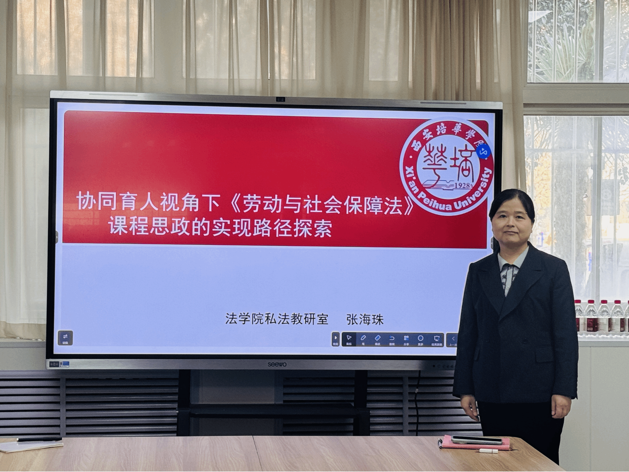 会上,张海珠副教授以《劳动与社会保障法》课程为范例,分享思政实践成果。该课程作为保障民生、维护公平正义的核心课程,价值导向与思政目标高度契合,此前曾面临主体协同不足、内容融合碎片化、评价机制单一等问题。为破解困境,课程组构建“多元主体联动、知识思政融合、全程育人贯通、多元评价保障”实践路径,学院通过师资培训等举措筑牢保障支撑。