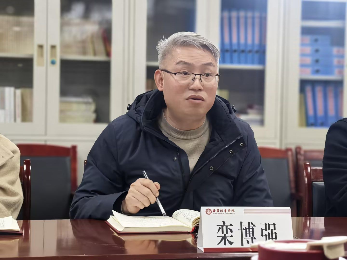 随后,教学副院长栾博强针对每位博士的研究方向与选题开展点对点精准指导。他立足学院学科建设整体布局,提出三方面核心指导意见:一是强化专业交叉融合思维,鼓励博士教师打破学科壁垒,主动对接不同专业领域的研究热点与实践需求,以跨学科视角拓宽研究思路、提升课题创新性;二是聚焦课题研究梯次培育,既要扎实推进校级课题的孵化培育工作,夯实科研基础、积累研究经验,更要以校级课题为依托,精准研判高级别课题申报方向,提前谋划、精心筹备,提升高级别课题申报的成功率;三是做好个人工作任务系统分解,要求博士教师结合年度科研目标与教学任务,制定细化的阶段性工作计划,明确各环节时间节点、重点任务与实施路径,确保各项工作有序推进、落地见效。指导过程中,栾院长既充分肯定了各选题的学术价值与实践意义,也结合具体研究方向给出了可操作的优化建议,助力博士教师精准聚焦研究重点,提升科研工作的系统性与实效性。