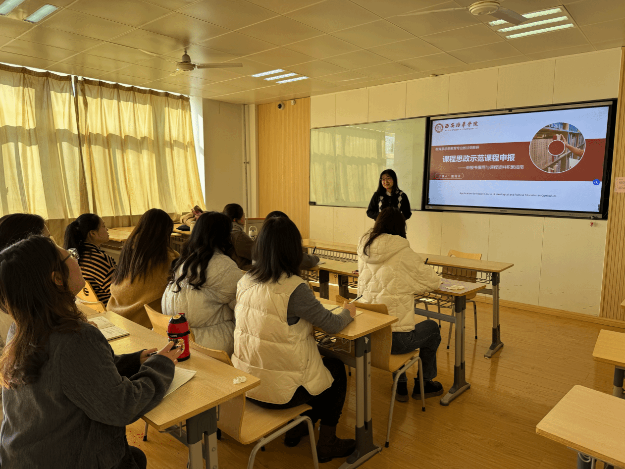 2025年12月25日,西安培华学院教育系学前教育专业教法组专题研讨会顺利进行,本次围绕课程思政示范课程申报工作展开经验分享与深度研讨。本次教研研讨由董雪菲老师主讲,学前教育专业部分骨干教师、青年教师齐聚一堂,共探课程思政与专业教学的深度融合路径,为提升人才培养质量凝聚共识。