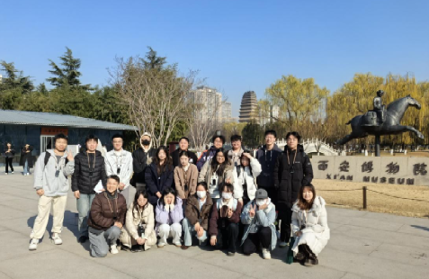 为持续深化产教融合,创新“双师课堂”教学模式,强化学生外语实践与应用能力,2025年12月17日下午,日语专业组织2023级日语01班全体学生,前往西安博物院与小雁塔开展《导游日语》校外实践教学活动。国际语言文化系副主任曹长春、任课教师霍文娜及企业导师、高级导游薛晓梅共同参与指导。