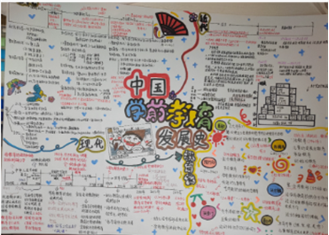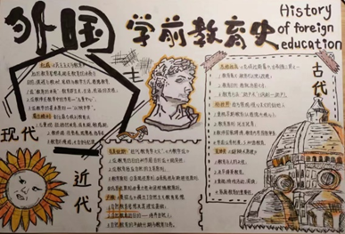 时间导图作业让学生成了教育史设计师。有的聚焦中国史,串联起蒙养院到当代普惠性幼儿园的制度变迁;有的对照中外,直观呈现同一时期中西方教育思想的异同,让零散的知识点形成系统的知识图谱,变成了一张张能看懂的教育史地图。