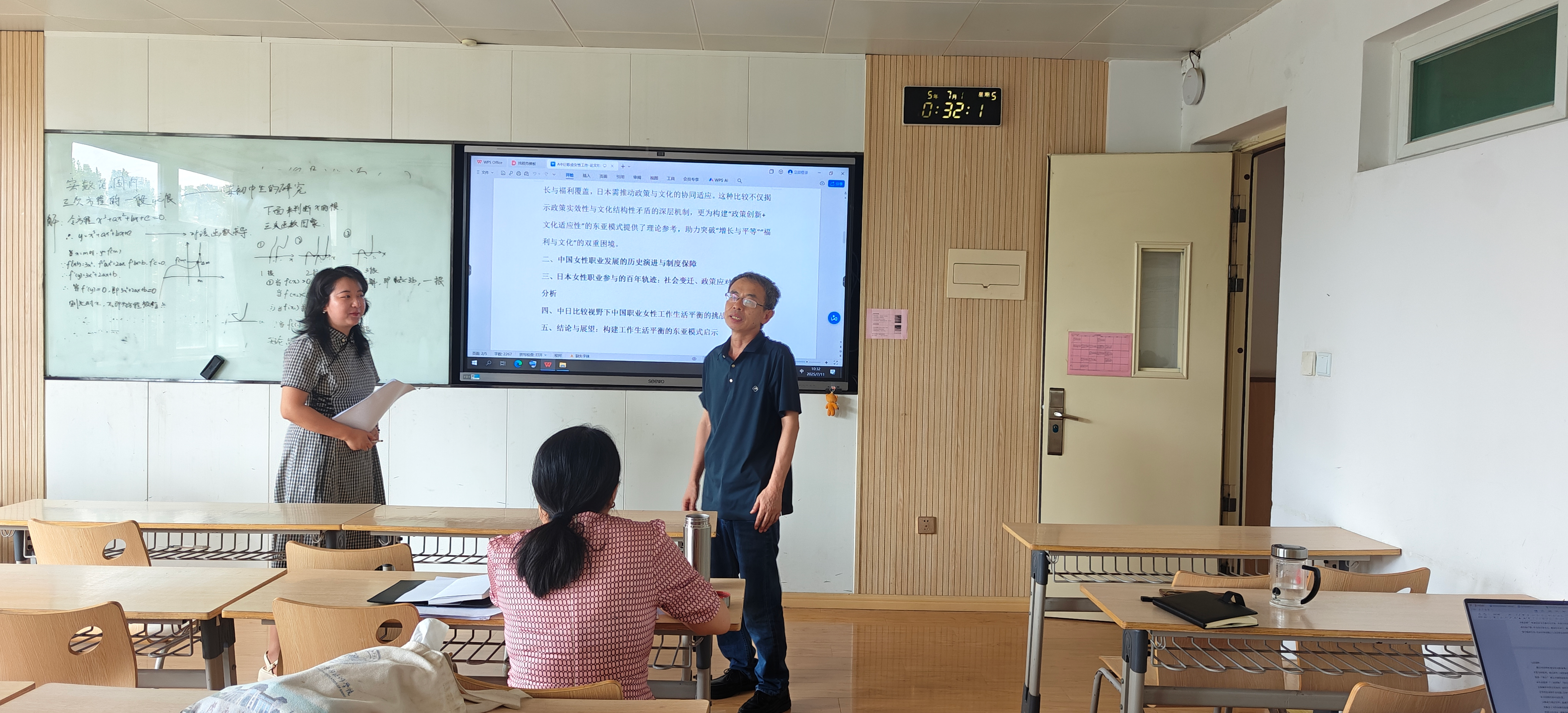 在会议的总结环节,程院长对各位老师的汇报给予了充分肯定,认为大家在研究工作中展现出了高度的热情与专业精神,取得的阶段性成果也为后续研究奠定了良好基础。同时,程院长对期末工作进行了部署安排,明确了各项任务的时间节点,确保学院的教学、科研等工作能够有条不紊地推进。他鼓励老师们继续深入研究,加强团队协作与交流,为推动近现代陕西女性教育史研究取得更丰硕的成果而共同努力。