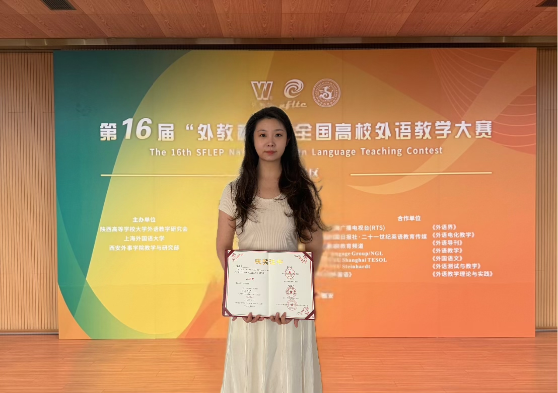在6月21日-22日举办的第十六届“外教社杯”全国高校外语教学大赛(大学英语组)陕西赛区复赛和决赛中,人文与国际教育学院外语系教师程文和张欣宜代表学校参赛,取得优异成绩,分别获得视听说组一等奖和综合组三等奖。创下该赛事历史新高。