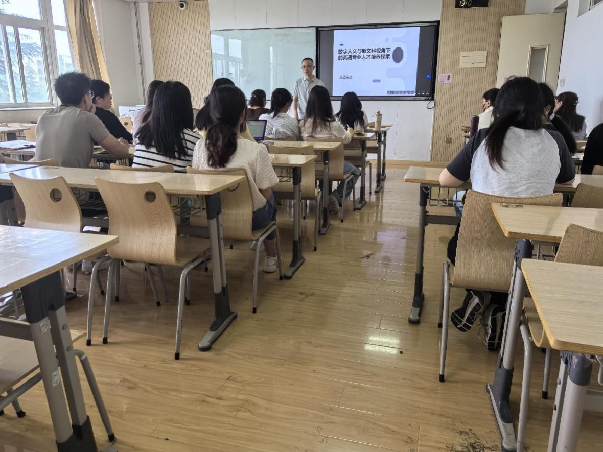 6月11日,英语专业教研室召开“数字人文与新文科视角下的英语专业人才培养探索”专题教研会。会议立足国家新文科建设与教育数字化战略背景,以跨学科融合与技术创新为驱动,结合语言智能、数字人文研究及国际化复合型人才需求,深入探讨英语专业在数字化转型中的改革路径与实践创新。本次会议由曹艳琴教授做主题报告,金培玉副主任主持,英语专业全体教师参会。