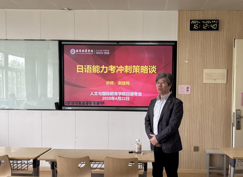2025年4月22日下午,人文与国际教育学院日语专业开展了一场主题为“日语能力考冲刺策略谈”的讲座,旨在提升学生的日语实际运用能力和国际日语能力考试的应试能力,助力日语专业学子在即将到来的日语能力考试中取得优异成绩。