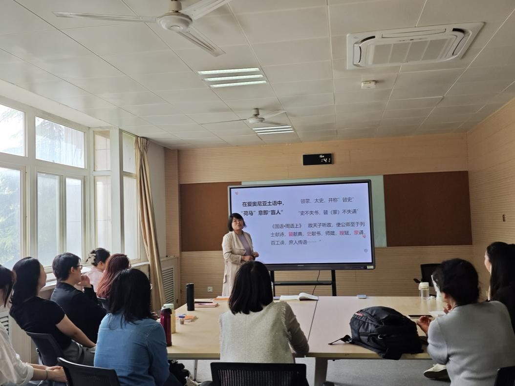 王雅老师以《外国文学》课堂上经常提到的“荷马问题”切入,指出跨语教学不仅成为教育发展的重要趋势,而且对教师和学生都提出了更高的要求。为了适应这一变革,教师理应具备良好的跨文化、跨语言和跨学科意识,积极参加跨学科的教学研讨活动。在交流中,老师们可以相互借鉴不同学科的思维方式和教学策略,拓宽自身的教学视野,提升教学质量,进而推动整个教育教学水平的提高。