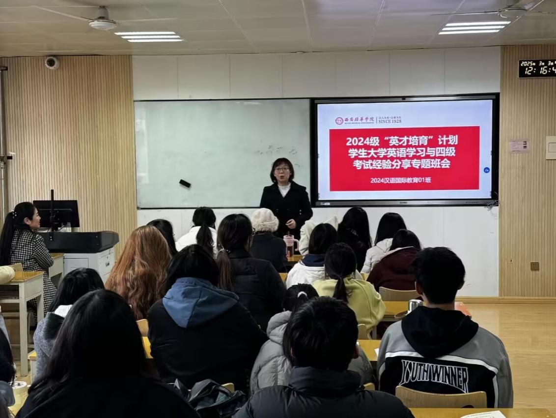 为了帮助学生更好地了解英语四六级考试要求,掌握备考技巧、提高应试能力,人文与国际教育学院号召2024级“英才培育”计划的学生班级在3月3日和4日分别召开了大学英语学习与四级考试经验分享专题班会。班会由英才班学业导师张静、张萍、张莉霞、雷婧、徐凯组织召开,邀请了班级英语老师那琳、霍亚风分析讲解考情,辅导员老师高嘉炜、仵悦曦、范洁、梁博全程参与,全班学生共同聆听,相互分享考试经验。