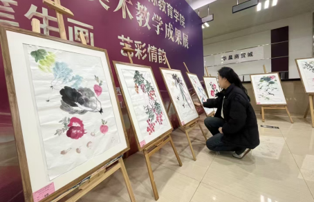 在国画作品展区,学生们用笔墨勾勒出一幅幅意境深远的画卷。写意花鸟栩栩如生,工笔山水细腻精致,每一幅作品都凝聚着学生们的心血与才华。这些国画作品不仅展示了学生们在国画领域的扎实功底,也体现了他们对中华传统文化的热爱与传承。