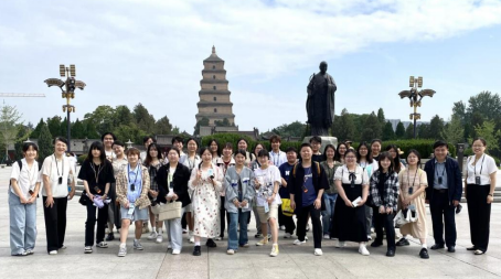 为了进一步深入推进教学成果培育项目《导游日语》的课程建设,将理论与实践紧密结合,为学生就业奠定基础,6月7日上午,西安培华学院人文与国际教育学院外语系日语专业2021级学生前往大雁塔开展《导游日语》课程校外教学实践活动。外语系主任李国栋、副主任曹长春、任课教师霍文娜带队前往。