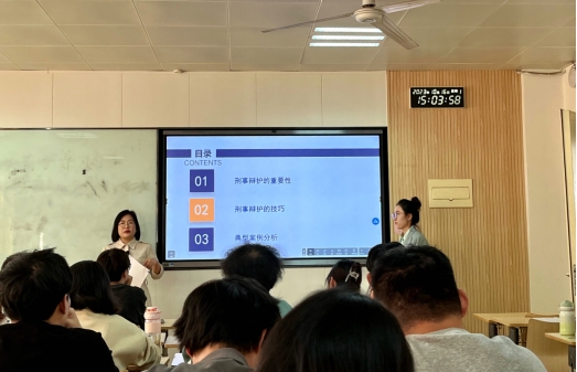 在《律师与公证实务》授课过程中,赵丹律师与法学专业田思雨老师一起走进课堂,以《刑事辩护的技巧与实务》为主题,从当前刑事案件律师行使刑事辩护权出发,通过对律师行使辩护权进行辩护的理论基础、实务技巧、难题应对的提问与思考,展开了本次讲座的主要内容。