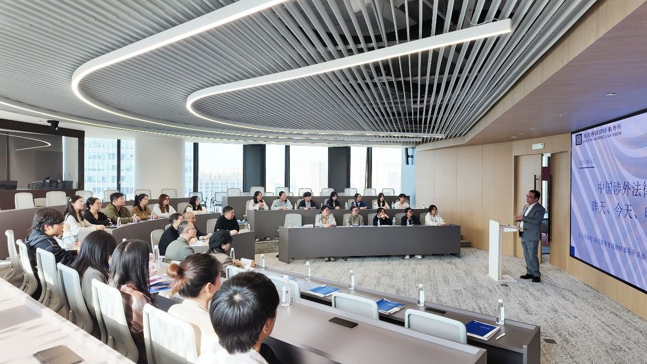 张律师结合自己经办的真实案例,强调了涉外法律是理论与实践高度结合的领域。他详细解读了教育部关于加快涉外法治人才培养的相关意见,指出当前国家对此类人才的迫切需求,鼓励同学们把握“英语+法律”的复合优势。
