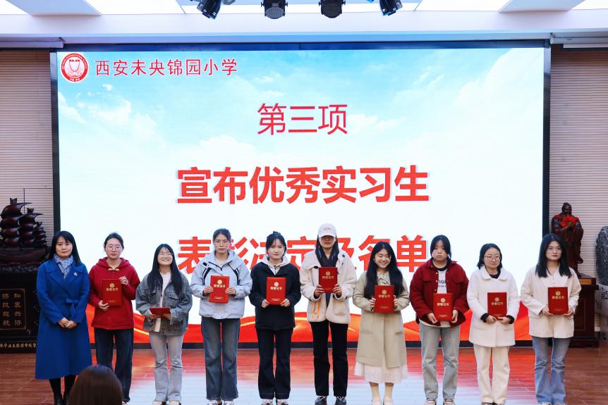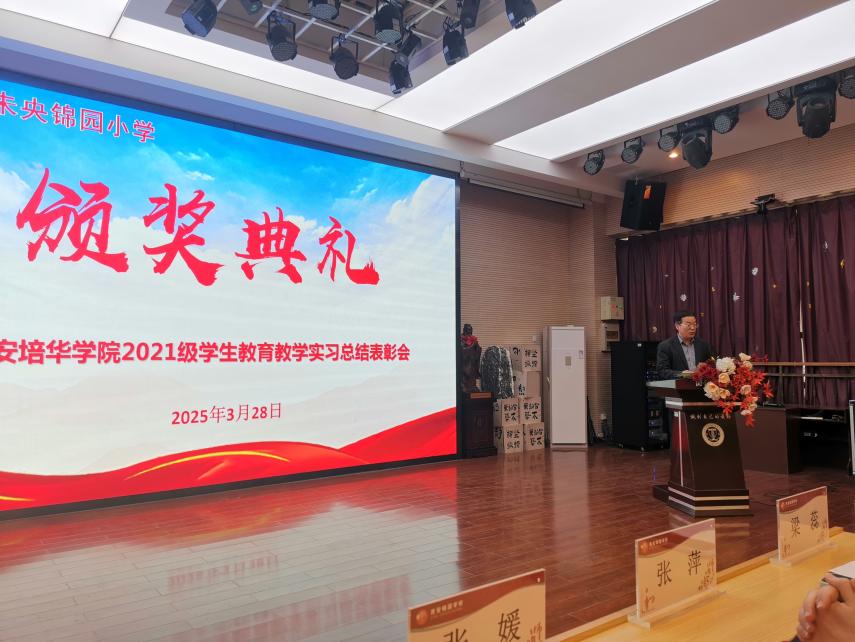 2025年3月28日下午,西安未央锦园小学召开西安培华学院2021级学生教育教学实习总结表彰会。人文与国际教育学院院长梁蕊、中文系主任张萍、实习带队教师张媛、惠雪滢和贾亦梦,与锦园小学校领导及教师代表共同出席活动,为这次院校合作培养画上圆满句号。本次会议由锦园小学工会主席王哲主持。