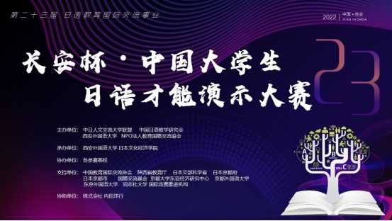 2022年10月29日举行的第二十三届长安杯·中国大学生日语才能演示大赛由中日人文交流大学联盟、中国日语教学研究会、西安外国语大学联合主办主办,受到中国教育国际交流协会、陕西省教育厅、日本文部科学省、日本京都府等单位的大力支持。本届大会采用线上方式进行大,中日两国会场同步,实时观看,日本专家现场评审。