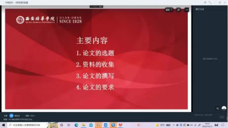 傅亚卓老师首先从中文系毕业论文工作组织与管理、毕业论文如何撰写、毕业论文的注意事项等方面进行详细介绍和积极动员。就如何撰写毕业论文这一问题,她从论文的选题、资料的收集、论文的撰写与要求四个方面进行了详细的指导,并对每一环节应注意的问题做了重点强调。其次,她对毕业论文阶段任务和时间安排进行了说明,要求学生必须按照时间节点保质保量完成论文任务。最后,她指出毕业论文是培养学生分析问题和解决问题能力的重要途径,也是实现教学、科学研究和生产实践相结合的重要途径。希望同学们严格遵守论文的要求和标准,与指导老师及时沟通,合理、有效地开展毕业论文写作。