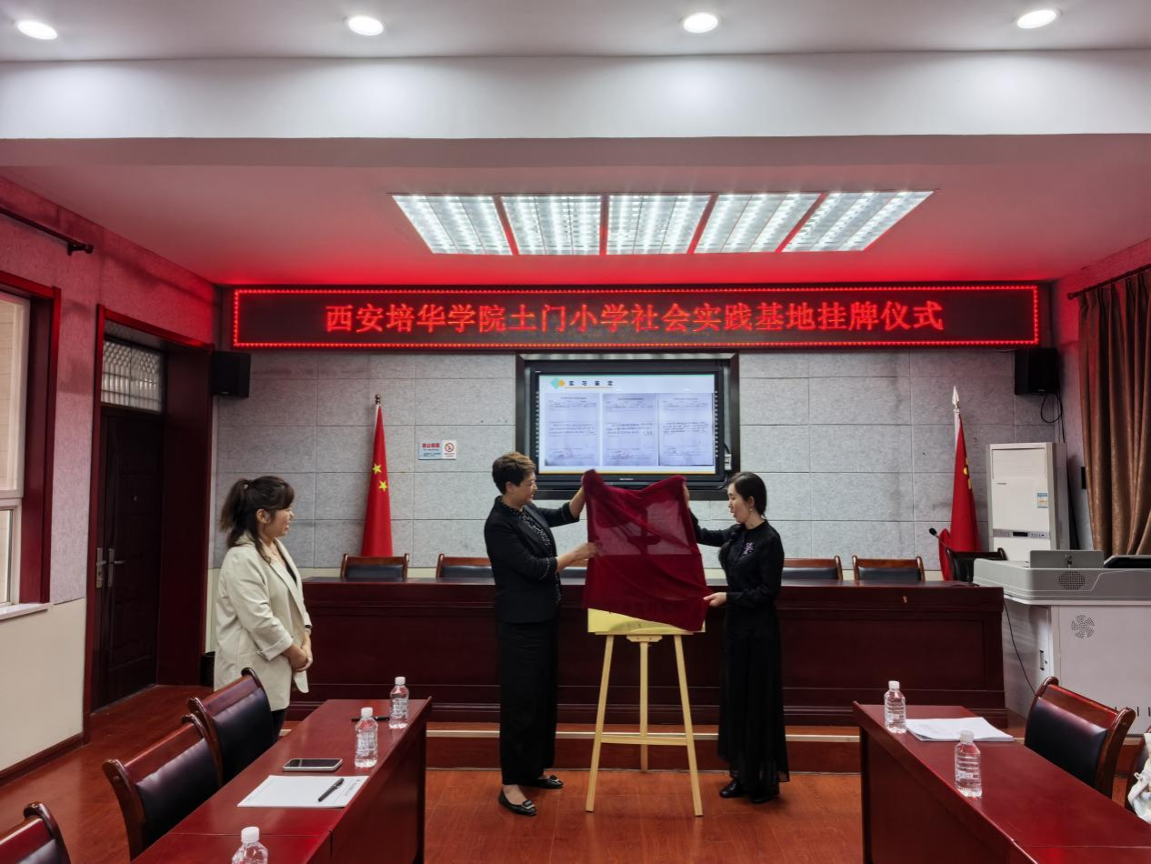 在热烈的气氛中,校外实习基地揭牌仪式正式举行。红绸轻揭,“培华学院校外实习基地”铜牌熠熠生辉,标志着双方合作迈向新阶段。揭牌后,全体人员合影留念,镜头定格下双方笑容洋溢的瞬间,承载着对未来的共同期待。