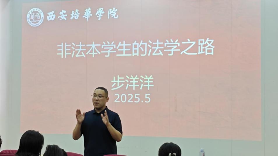 2025年5月29日,中国政法大学法学博士、西北政法大学教授、博士生导师步洋洋老师受邀为“涉外法律微专业”全体学生及教师带来一场主题为“非法本学生的法学之路”专题讲座。