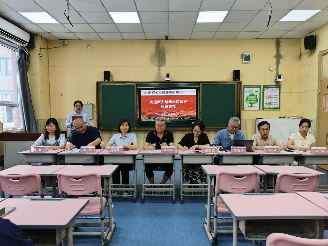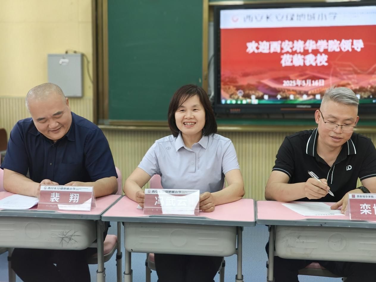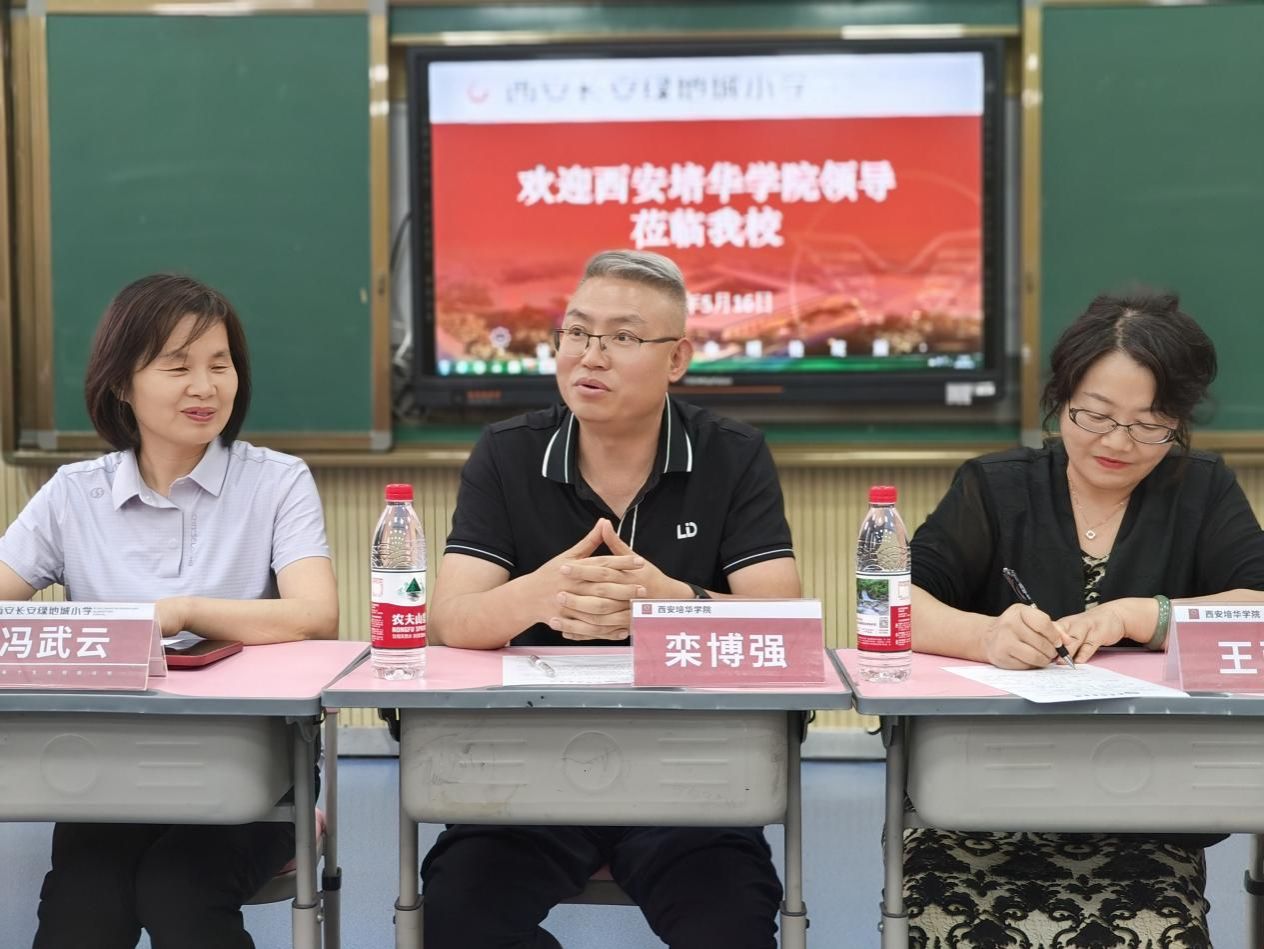 2025年5月16日,西安培华学院教育教学督导小组赴人文与国际教育学院实习基地——西安市绿地城小学开展走访调研。作为双方自2023年6月建立合作以来的常态化交流活动,本次座谈会旨在深化校际合作,优化实践教学体系,助力应用型人才培养。