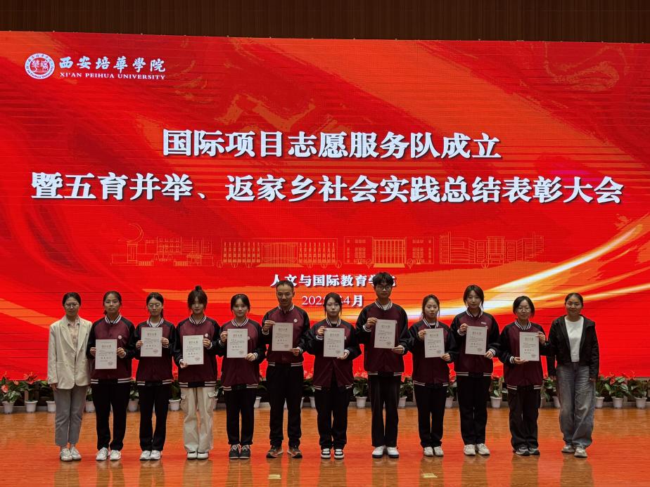 为深入贯彻学习党的二十大精神,全面落实立德树人根本任务,着力构建“五育并举”育人体系,持续推进国际化人才培养战略,系统总结学院2025年寒假“五育并举、返家乡”社会实践等专项志愿服务工作成效,人文与国际教育学院于2025年4月9日在维之图书馆报告厅隆重举行国际项目志愿服务队成立仪式,同步召开五育并举实践成果总结表彰大会及校运动会动员大会。