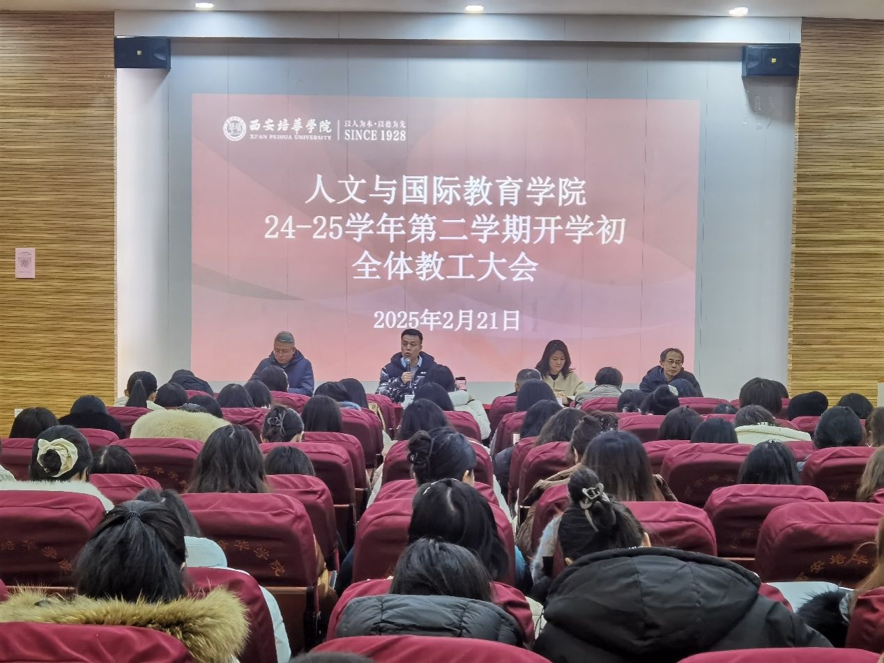为确保2024-2025学年第二学期开学各项工作平稳有序开展,人文与国际教育学院于2月21日下午14点,在格物楼J101教室召开新学期全体教职工大会,全面部署新学年重点工作。学院领导班子成员及全体教职工齐聚一堂,共同为新学期的发展谋篇布局。会议由学院党委书记兼副院长南兵主持。