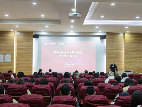 为进一步加强我院学生的学业管理,推进学风建设,充分发挥学院、学生、家庭“三结合”教育的功能,帮助学生顺利完成学业,保障教育教学和人才培养质量,2024年10月30日16点,人文与国际教育学院在格物楼J101教室召开2024-2025学年第一学期学业警示宣讲大会,人文与国际教育学院院长梁蕊,党委书记兼行政副院长南兵,教学副院长栾博强,各系主任,学生干事,学籍管理员,被预警学生代表及其辅导员、学业导师共120人参加此次会议,会议由人文与国际教育学院教学副院长栾博强主持。