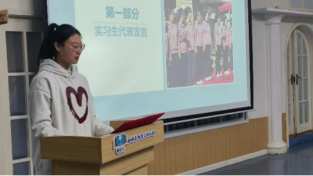 大会分几部分进行,首先实习生代表发言。