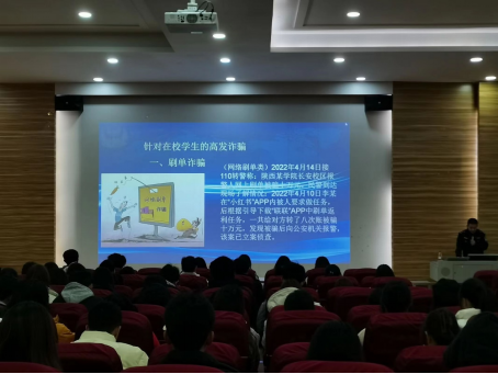 接着,刘洋警官详细分析了大学生中常见的六种诈骗,分别是:校园贷诈骗、兼职诈骗、网购诈骗、恋爱诈骗、中奖诈骗、募捐诈骗。他用真实的案例和数据,揭示了这些诈骗的手法和危害,教育同学们要理性消费,慎重选择,谨慎交友,理智判断,自觉抵制,积极举报。