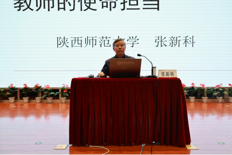 张新科教授同时指出教师的职责是非常神圣而光荣的,传统意义上的传道、授业、解惑,到当代有了新的内涵和新的发展。教师不仅要传播知识、传播思想、传播真理、塑造灵魂、塑造生命、塑造新人,还要做学生的引路人,成为学生为学、为事、为人的示范,成为“经师”与“人师”相统一的“大先生”。张新科教授结合实际事例,从八个方面深入浅出地讲解当代教师怎样才能担当此重任、站稳讲台、走好育人之路。