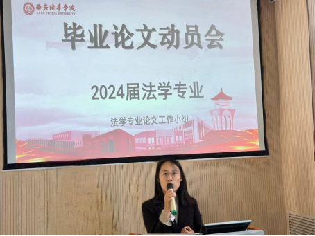 为进一步落实西安培华学院人文与国际教育学院法学系2024届毕业生学位论文工作的规范化管理,确保2024届毕业生毕业论文工作顺利开展,法学系于2023年10月13日12:50于3506教室召开了2024届毕业生论文动员大会。参加本次动员大会的人员有法学系专业学科带头人赵旭东教授,法学系主任马亚乐老师,法学系副主任李倩老师和全体法学系论文指导教师。会议由法学系论文组负责人田思雨老师主持。
