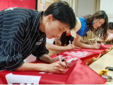 最后,由班干部带头,全体同学在横幅上签名并合影留念。