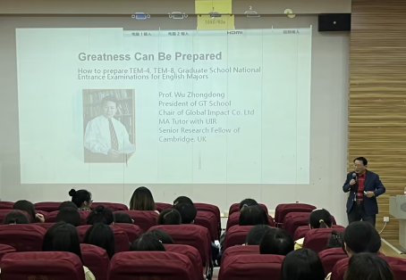 讲座开始,吴教授首先通过幽默风趣的故事向同学们展示了英语语音语调的学习;随后,吴教授详细讲解了英汉两种语言的差异,以及翻译时的技巧,吴教授提醒同学们避免在翻译中使用汉语思维方式,翻译英文著作或英文文献一定在理解原文的基础上,要以“意义”为重点,再加上翻译的技巧,以达到原文与译文思想意义和文化内涵的一致。